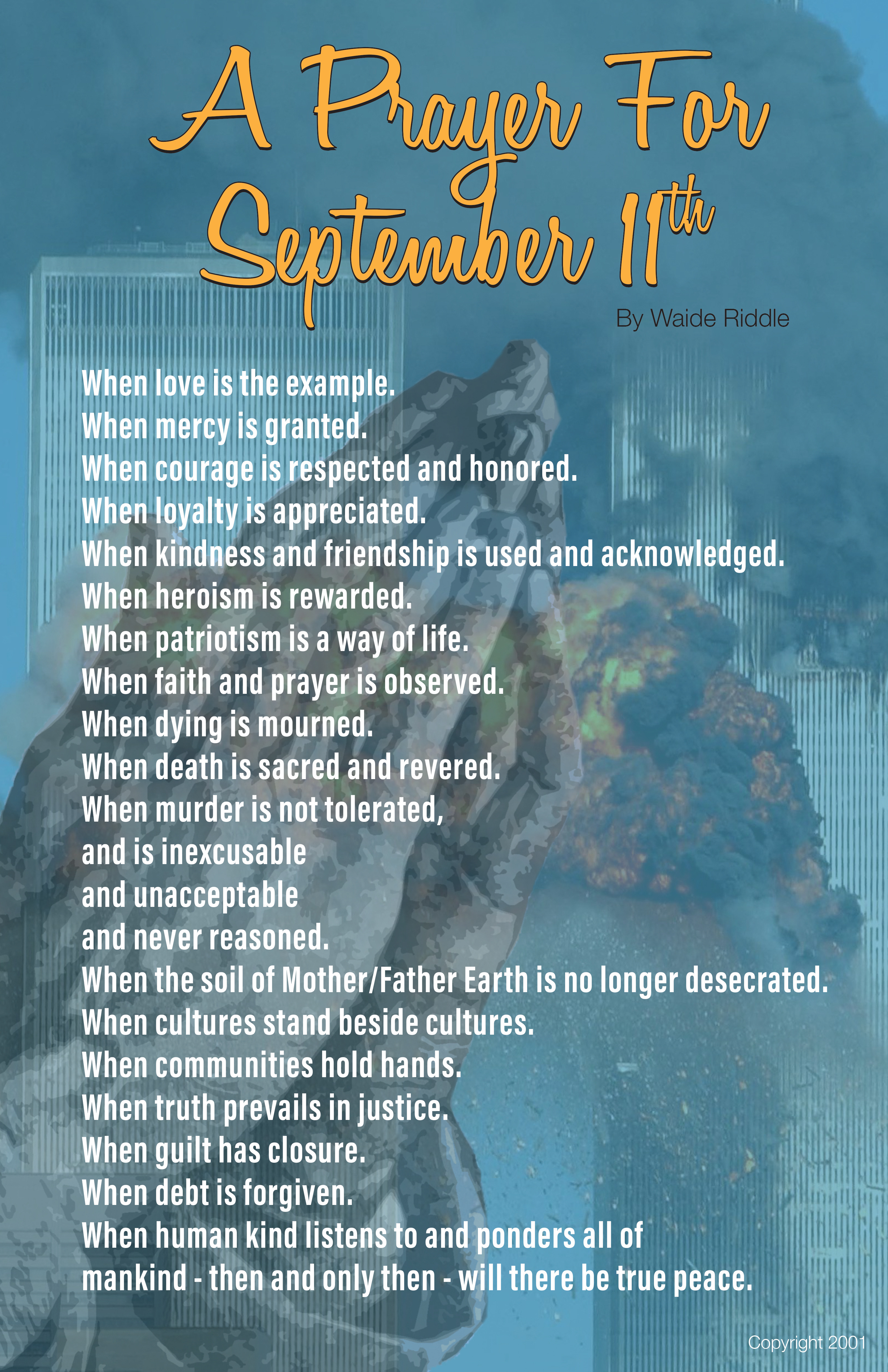 The poster to my poem A Prayer For September 11th.